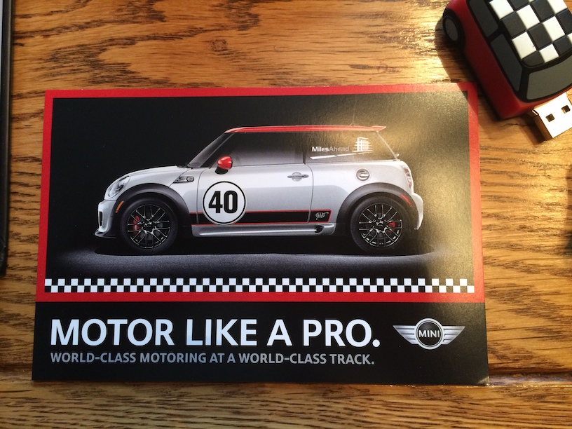 - MINI driving school. THAT would be a blast!