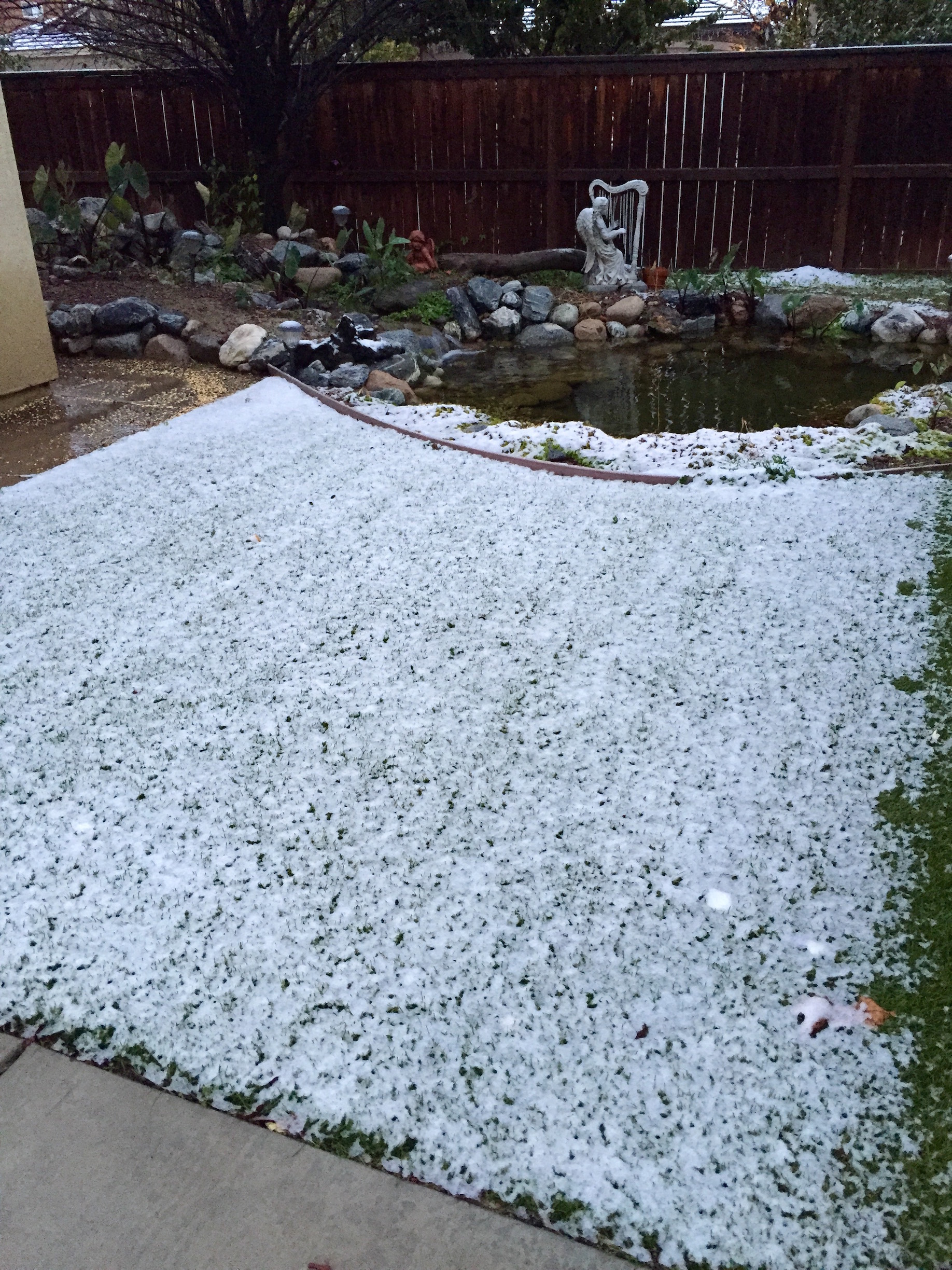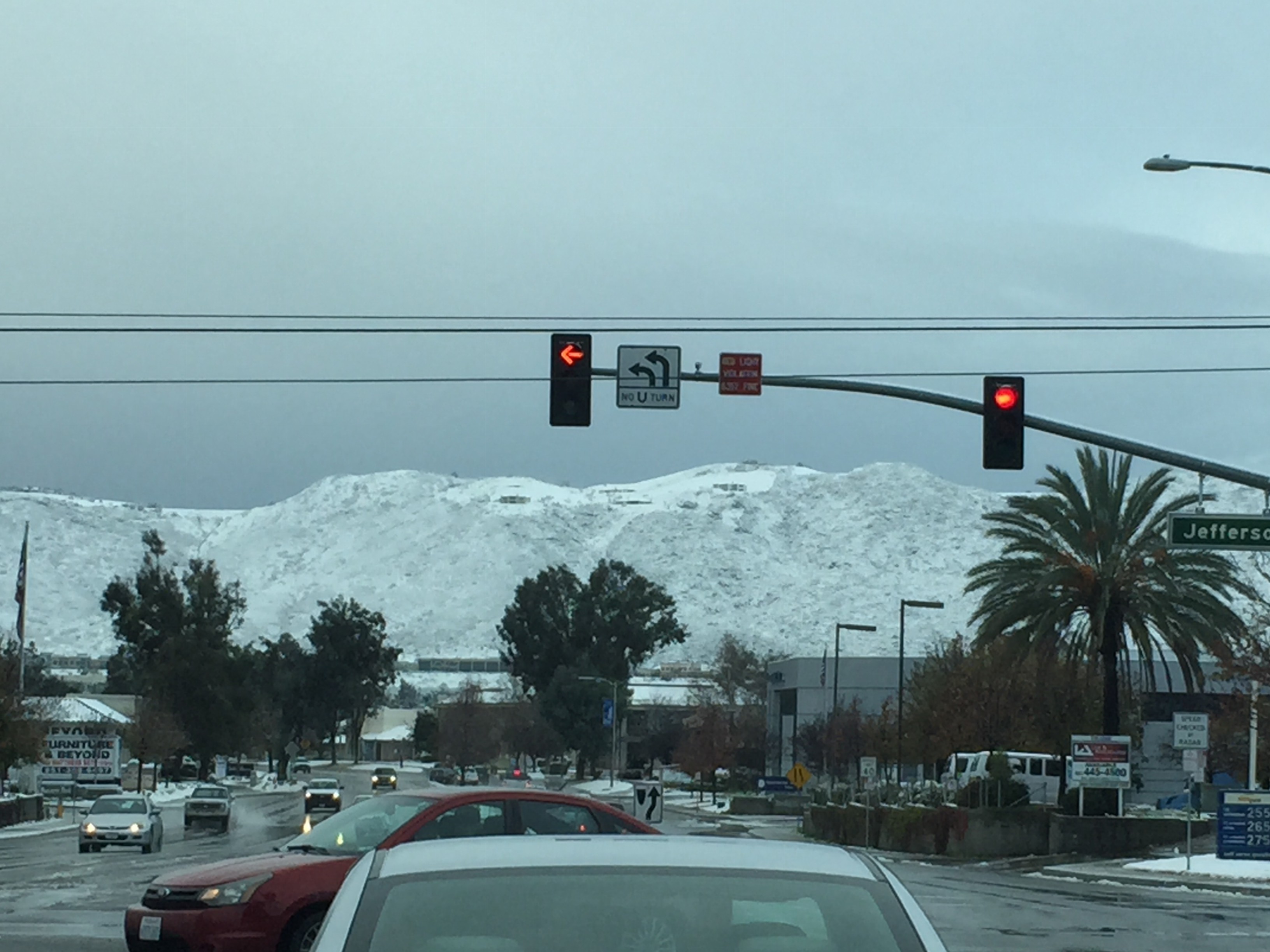 While continuing the relaxing break from work on this last day of 2014, we woke up to a dusting of snow at the house. Around town was much the same with up to 8-10″. Oh yeah, we live in Southern California at about 1,000 ft. elevation; Rare, indeed. It last snowed about 10 years ago but melted just about as soon as it hit the ground. This time, it closed down roads and even the freeway.
